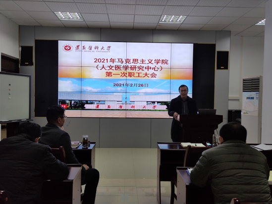 2021年2月26日上午,太阳成集团tyc122ccvip(人文医学研究中心)在人文楼313多功能厅召开了新学期全体职工会暨教学准备会。会议由公司党委书记李荣远主持,太阳成集团tyc122ccvip(人文医学研究中心)班子成员和全体教职工参加了会议。