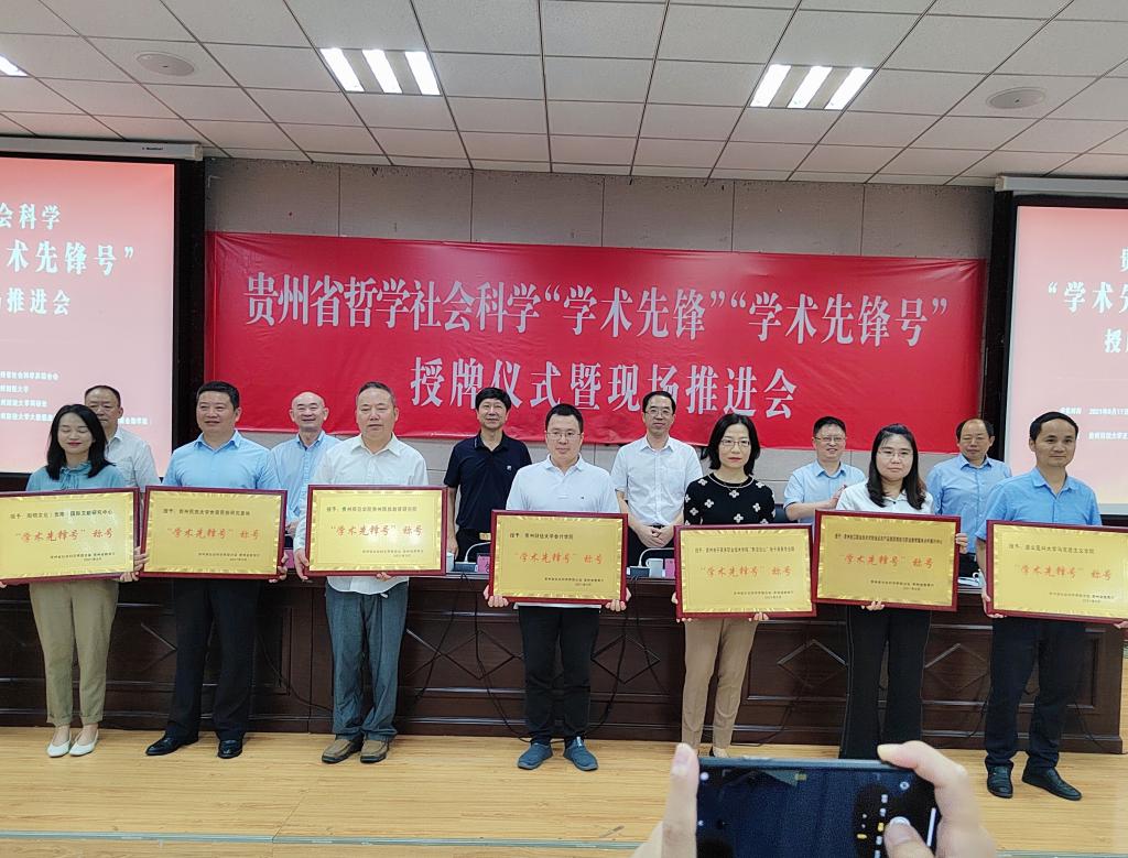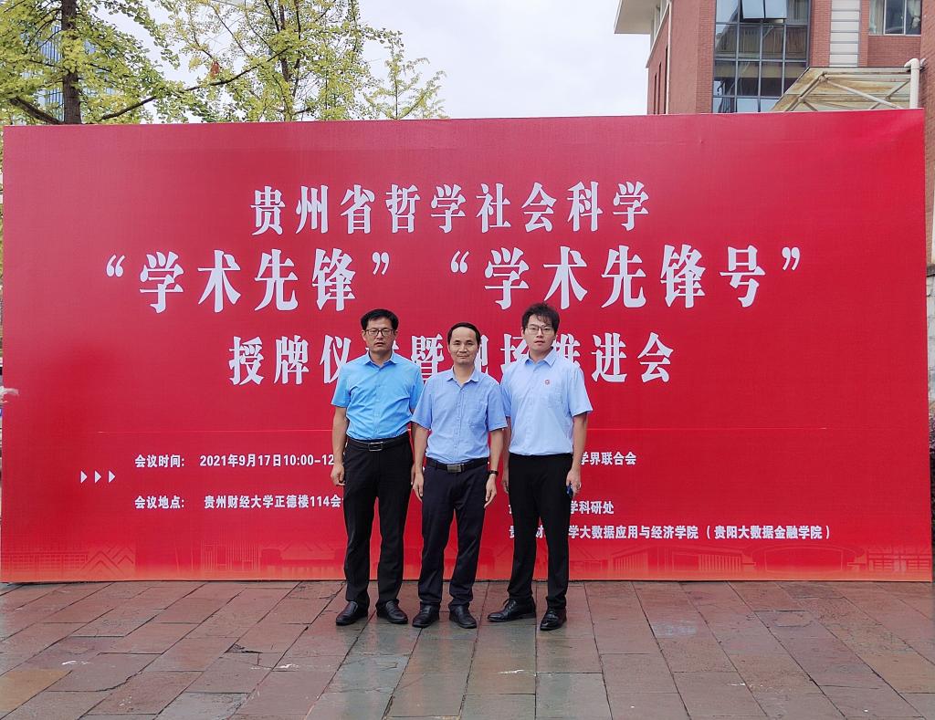 9月17日,由贵州省社科联、省教育厅联合主办,贵州财经大学承办的贵州省哲学社会科学“学术先锋”“学术先锋号”授牌仪式暨现场推进会在贵州财经大学召开。省社科联党组书记、副主席包御琨,省教育厅副厅长战勇,贵州财经大学党委书记刘雷,董事长赵普,副董事长李汉文等领导出席会议。省社科联党组成员、秘书长刘丰泉主持会议。来自全省“学术先锋”“学术先锋号”代表、高校社科联(科研管理部门)80余人参加会议。公司太阳成集团tyc122ccvip副经理鲍中义教授和王纪鹏教授、沈洋副教授受邀参加会议。鲍中义教授代表太阳成集团tyc122ccvip接受“贵州省哲学社会科学学术先锋号”命名授牌。王纪鹏教授、沈洋副教授分别接受“贵州省哲学社会科学学术先锋”命名授牌。据悉,近年来,在省社科联、省教育厅的联合推动下,我省已连续开展三届遴选工作,“学术先锋”和“学术先锋号”的产生必将有力推动我省思想、政治、经济、文化等领域的创新发展,对新时代繁荣全省哲学社会科学事业发展具有重要意义,为我省高质量经济发展提供强有力的人才保障和智力支撑。(撰稿:吴启存,摄影:王纪鹏、沈洋)