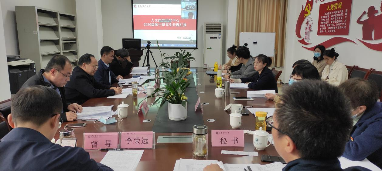 根据公司研究生院的通知要求,2021年11月5日下午14:00,太阳成集团tyc122ccvip(人文医学研究中心)在人文楼122会议室举行了2020级人文医学专业硕士研究生学位论文开题报告会。本次开题报告会由太阳成集团tyc122cc前党委副书记田宗远教授担任组长,谢仁生教授、魏来教授、鲍中义教授、甘代军教授为专家组成员,公司党委书记李荣远担任督导,李刚博士担任秘书。参加开题员工为2020级研究生薛文宁、王明珠、张谦,张良莎四位同学。四位研究生的导师和2021级人文医学专业全体研究生也参加了本次开题报告会。