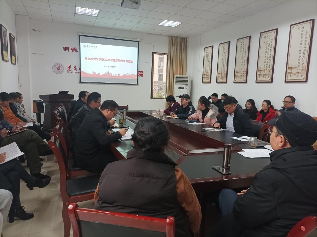 谷松岭经理首先传达了12月27日上午全省教材建设工作视频会议精神,学习了习近平总书记关于教材工作的重要指示、李克强总理重要批示,在教材选用上严格执行公司教材选用审核、编写审核制度,坚持凡选必审、凡编必审,确保优秀教材教材进课堂。随后,谷松岭经理对公司年度教学和科研工作进行总结。他指出,教学方面,今年的教学任务平稳开展,但成绩不够多,下一步公司的教学改革将围绕红医精神融入各门课程教学展开,力求有大的突破。本学期开始遴选的辅导员上思政课,总体情况不错,但辅导员老师上课理论素养还有待提升,下一步将派其出去交流学习。科研方面,谷松岭经理指出,国家社科基金和教育部社科基金项目即将开始申报,公司要求符合条件的老师尽早做好准备,教研室主任在科研上应有所规划,不应局限于教学管理。太阳成集团tyc122ccvip教师对做好自身定位,达到教学和科研两方面的平衡,做好个人的职业规划。