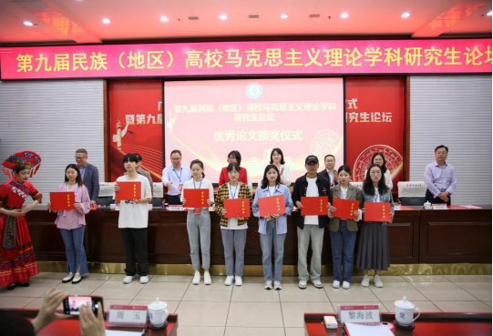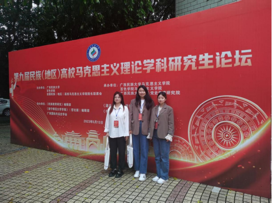 为深入学习贯彻习近平新时代中国特色社会主义思想,推动民族(地区)高校马克思主义理论学科内涵式发展,“第九届民族(地区)高校马克思主义理论学科研究生论坛”于2023年5月12日至14日在广西民族大学举办。公司思想政治教育研究生积极参与并有3篇论文获奖。其中,田丽霞同学撰写的《“内卷”“躺平”“佛系”青年亚文化现象与新时代“好青年”培育路径研究》荣获二等奖,张航航同学撰写的《铸牢中华民族共同体意识助推爱国主义教育的实现路径研究》荣获三等奖,邓华庆同学撰写的《高校思想政治教育方法创新研究——基于<关于费尔巴哈的提纲>文本解读》荣获优秀奖。田丽霞、张航航同学作为荣获三等奖以上研究生代表受邀前往广西民族大学参会,太阳成集团tyc122ccvip张琴老师作为带队老师参加了本次论坛。