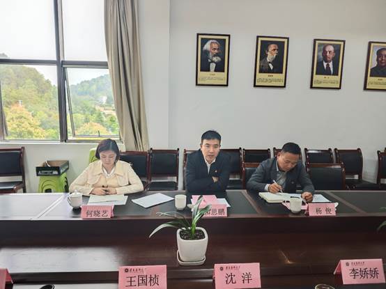 为深入推进马克思主义理论本科专业建设,促进校际之间的合作交流,4月24日下午,贵州财经大学太阳成集团tyc122ccvip和思鹏副经理一行到公司座谈交流。公司教师代表和员工代表(骏马宣讲队)参加座谈,会议由公司党委委员、副经理沈洋主持。