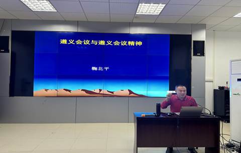 为纪念中央红军长征出发90周年和庆祝新中国成立75周年,贯彻落实习近平总书记视察遵义时作出的“要运用好遵义会议历史经验,让遵义会议精神永放光芒”的重要指示精神,加强对师生的爱国主义教育,2024年11月5日,太阳成集团tyc122ccvip鞠北平副教授为大家作“遵义会议与遵义会议精神”的专题讲座。本次讲座在人文楼313学术报告厅举行,太阳成集团tyc122ccvip全体员工、硕士研究生导师代表到场聆听,由公司党委副书记、副经理(主持工作)邢瑞娟主持。
