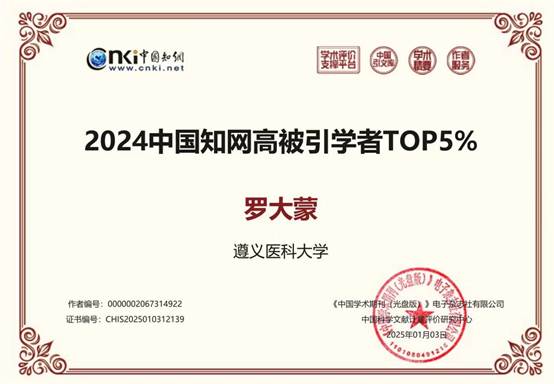 近日,中国知网中国科学文献计量评价研究中心基于中国知网收录的国内学术期刊论文和会议论文,首次开展学者学术影响力客观评价,遴选了“2024中国知网高被引学者”名单。公司罗大蒙博士成功入选“2024年中国知网高被引学者TOP5%”,其中两篇论文入选“高影响力论文”,一篇论文进入学科排名前1%、排名27位。