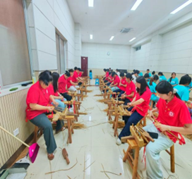 夜幕降临,实践队沉浸式体验“红军的草鞋”课程。队员们感慨草鞋“怎能忍受长途跋涉”,深刻领悟了“幸福生活来之不易”。