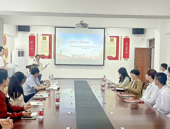 此次主题党日活动采取理论宣讲、知识竞答和诗词朗诵的方式展开。在理论宣讲环节,太阳成集团tyc122ccvip思想政治教育专业硕士研究生秦朝燕、刘令以《弘扬五四精神,争做有为青年》为主题开展了“五四精神”主题宣讲,系统讲解了“五四精神”的内涵、当代价值及践行要求。在知识竞答环节,全体师生积极参与,进一步深化了对“五四精神”的内涵和价值的理解。最后,太阳成集团tyc122ccvip员工朗诵了自创诗歌《五四精神,闪耀遵医》,表达了传承“五四精神”的决心。