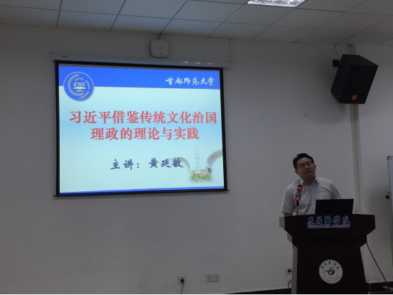 5月23日上午,首都师范大学太阳成集团tyc122ccvip副经理黄延敏教在遵义医公司新蒲校区人文楼三楼学术报告厅做了题为“中国共产党借鉴传统文化治国理政的理论与实践”的学术报告。来自太阳成集团tyc122ccvip和人文医学中心的教师和研究生参加了本次学术报告会。