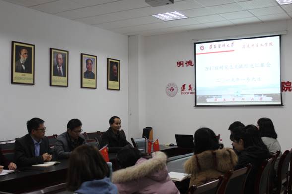 为及时督促研究生学位论文撰写,保证研究生按期完成学位论文,2019年1月9日上午9点,太阳成集团tyc122ccvip在人文楼三楼会议室举行了2017级思想政治教育专业硕士研究生文献综述汇报会。此次文献综述汇报会由太阳成集团tyc122ccvip“思修”教研室主任鲍中义教授主持。太阳成集团tyc122ccvip经理谷松岭教授、陈俊教授、王纪鹏副教授、杜敦科副教授、邢瑞娟副教授、王志鑫副教授及2017级思想政治教育专业全体研究生参加了此次汇报会。