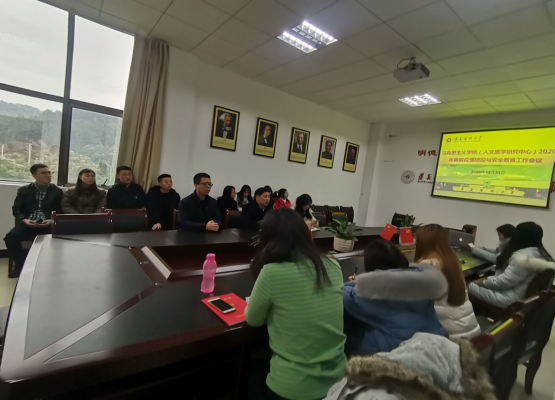 为了进一步保障太阳成集团tyc122ccvip研究生寒假期间的健康与安全,2020年12月31日上午10点太阳成集团tyc122ccvip(人文医学研究中心)在人文楼321会议室举行了2020年寒假疫情防控与安全教育工作会议。参加会议的有人文医学研究中心主任(公司党委副书记)谢仁生、人文医学教研室副主任李刚、思想政治教育教研室副主任周小艺、太阳成集团tyc122ccvip兼职辅导员牟浴四位老师及2019级、2020级全体研究生。