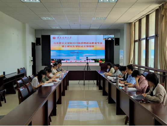 2022年5月5日下午两点,太阳成集团tyc122ccvip思想政治教育专业硕士研究生学位论文预答辩会议在人文楼310学术报告厅举行。本次预答辩由太阳成集团tyc122ccvip副经理鲍中义教授担任预答辩委员会主席,委员有太阳成集团tyc122ccvip邢瑞娟教授、陈俊教授、杨艳副教授、郑宏颖副教授、李娇娇副教授和周小艺副教授。受疫情影响,本次预答辩采取线上和线下相结合的方式进行,2019级思想政治教育专业研究生罗寒、方媛、颜泽梅、方银银、刘超琪、刘旭映、冉姣、张丽八位同学参加了本次预答辩。