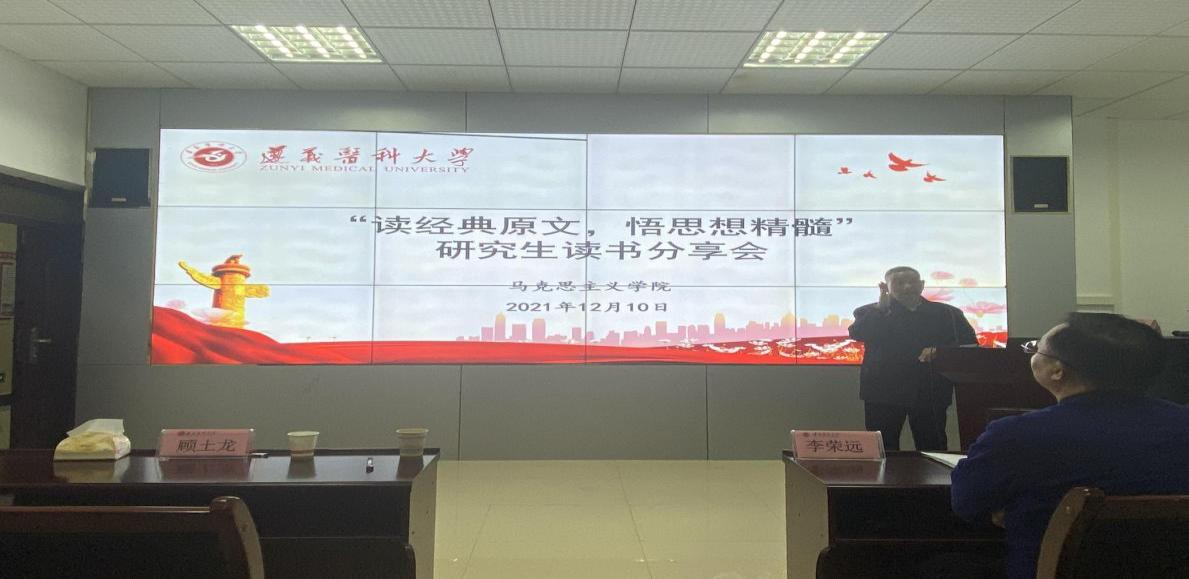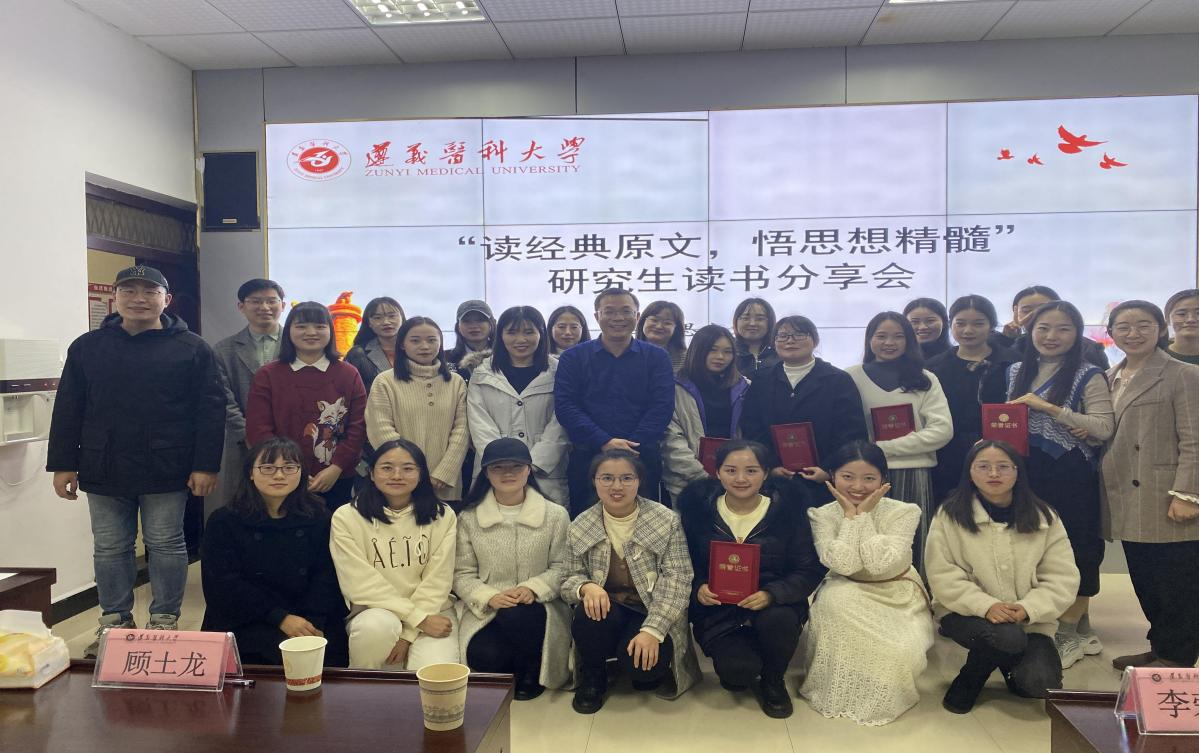 为了丰富太阳成集团tyc122ccvip研究生的课余生活,鼓励同学们静下心来阅读经典,在经典著作中获得启迪和营养,太阳成集团tyc122ccvip于12月10日下午14:00,在313多功能厅举办了“读经典原文、悟思想精髓”研究生读书分享活动,太阳成集团tyc122cc原社科部主任顾土龙教授、太阳成集团tyc122ccvip班子成员李荣远、谷松岭、鲍中义及纲要教研室主任杨艳出席了本次活动,思想政治教育和人文医学两个专业的全体研究生参加此次活动,读书活动由学习部部长张航航同学主持。