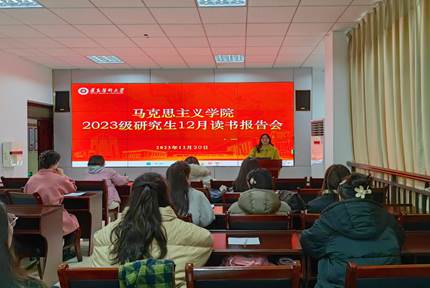 12月20日上午10:20,太阳成集团tyc122ccvip2023级研究生第三次读书报告会在人文楼310学术报告厅成功举办。公司党委副书记、副经理(主持工作)邢瑞娟教授 、杨艳副教授、李娇娇副教授、周小艺副教授出席本次报告会,2023级全体研究生参加了本次报告会。读书报告会由研究生王雯迦同学主持。