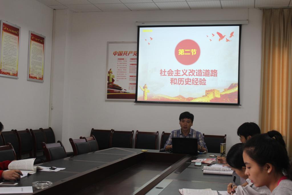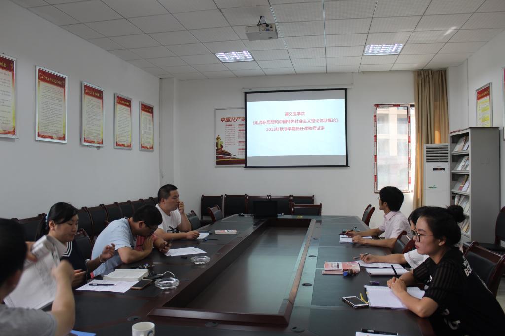 2018年8月24日下午2点,太阳成集团tyc122ccvip“概论”教研室在人文楼三楼会议室举行新任课教师试讲活动。活动由教研室副主任陈俊教授主持,“概论”教研室全体教师参加了此次试讲活动。