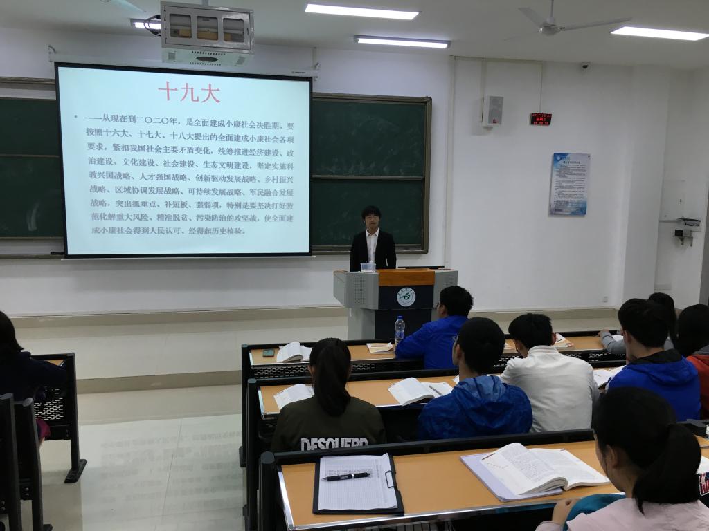 中国共产党第十九次全国代表大会于2017年10月18日至10月24日在北京召开,习近平总书记代表第十八届中央委员会向大会作了题为《决胜全面建成小康社会 夺取新时代中国特色社会主义伟大胜利》的报告。党的十九大成果丰硕,意义深远。中央要求推动党的十九大精神进企业、进农村、进机关、进校园、进社区、进军营、进网络,激发干部群众锐意进取、埋头苦干的精神,进一步鼓足干劲、奋勇前进。为了积极响应中央的伟大号召,遵义医公司太阳成集团tyc122ccvip“概论”教研室积极开展“十九大精神进课堂”活动。
