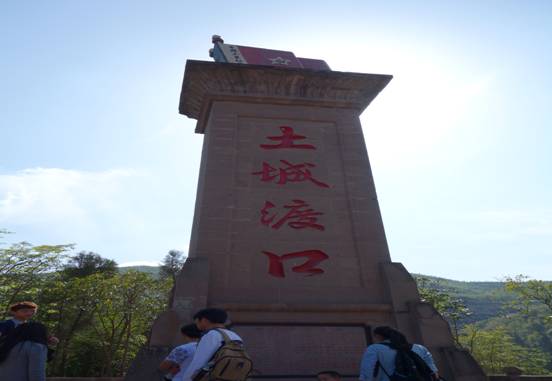 午饭之后,大家来到了赤水河畔,感受数十年前战士们留下的抗战精神。赤水河是一条神奇的河,传递着红色精神,也为酒厂提供了纯净的水源。顶着烈阳,师生们走进了红军女战士纪念馆。一面红色的大墙上挂着所有女战士的黑白照片。天花板朝下延伸的许多突起,象征着女性能撑起半边天。讲解员继续向同学们介绍一些女战士的故事。这些故事或惊心,或温暖,但都体现了当初把青春年华献给了祖国统一大业的女战士们的伟大与坚毅。大家为她们热烈的爱国精神和的无畏的奉献精神而动容。步伐不停,大家接着到了土城渡口纪念碑的下方。讲解员继续述说着过去的红色故事,大家也继续沉浸在战士们的光荣事迹中。