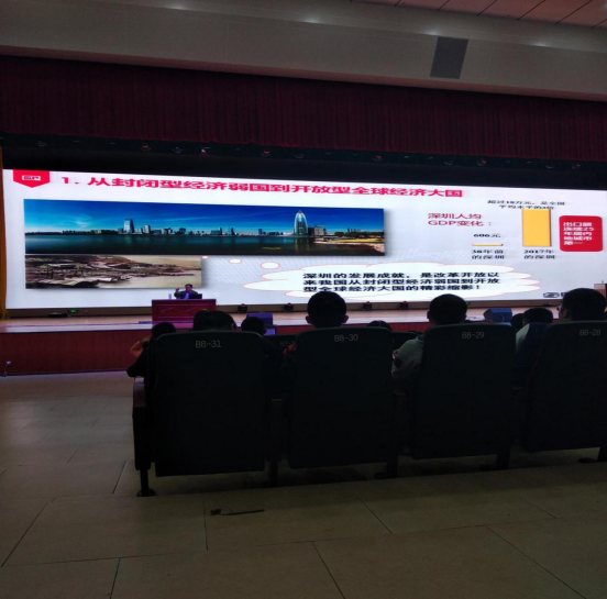 2018年10月10日-11日晚,形势与政策教研室王纪鹏博士在新蒲会堂为同学们做了《改革开放40年:改变了中国影响了世界》的专题报告。
